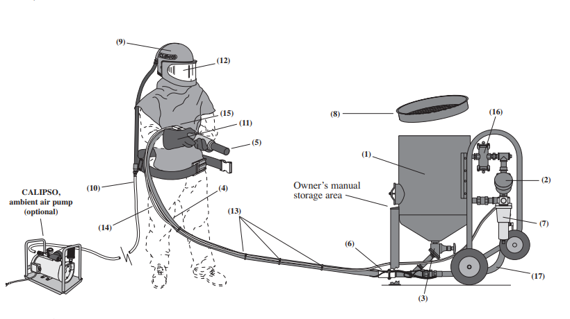 This high-performance and versatile low pressure (LP) breathing air system blast machine package can remove contamination, corrosion, mill scale, and coatings from most surfaces with a design intended to be convenient and efficient for use in the field. The included LP package provides everything necessary to begin blasting with an ambient air pump (to be used with included LP Apollo 600LP DLX respirator).