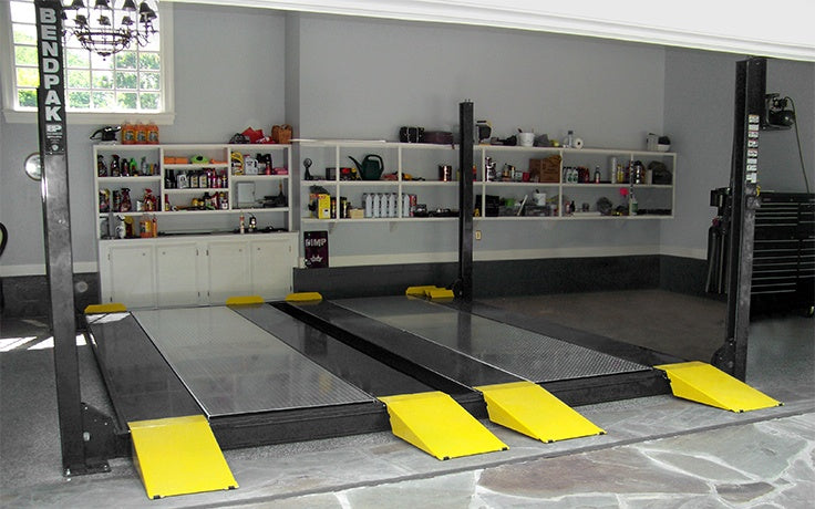 The runways on this BendPak four-post lift rise just 4.5" off the ground. Add the gently inclining ramps, and you can lift virtually anything.