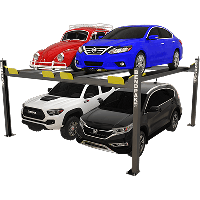 For those users that are looking for an affordable alternative to expanding your parking area or garage, we've got this new car parking lift from Bend Pak. If you need a lift that offers truly gigantic proportions, the HD-9SWX is one heck of a choice. Available with optional casters, drip-trays, jack platform and more. If your vehicles are tall, heavy and wide, and they need to be stacked or serviced, we can probably lift them.