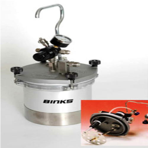 Binks SG-2 Plus Pressure Cup is ideal for component spraying and industrial applications where small batch production spraying is required. The 2 qt. capacity is sufficient to complete large spray jobs without refilling the cup. Its lightweight and rugged construction is excellent for portability allowing the operator to make fluid and air control adjustments quickly and efficiently at the spray station