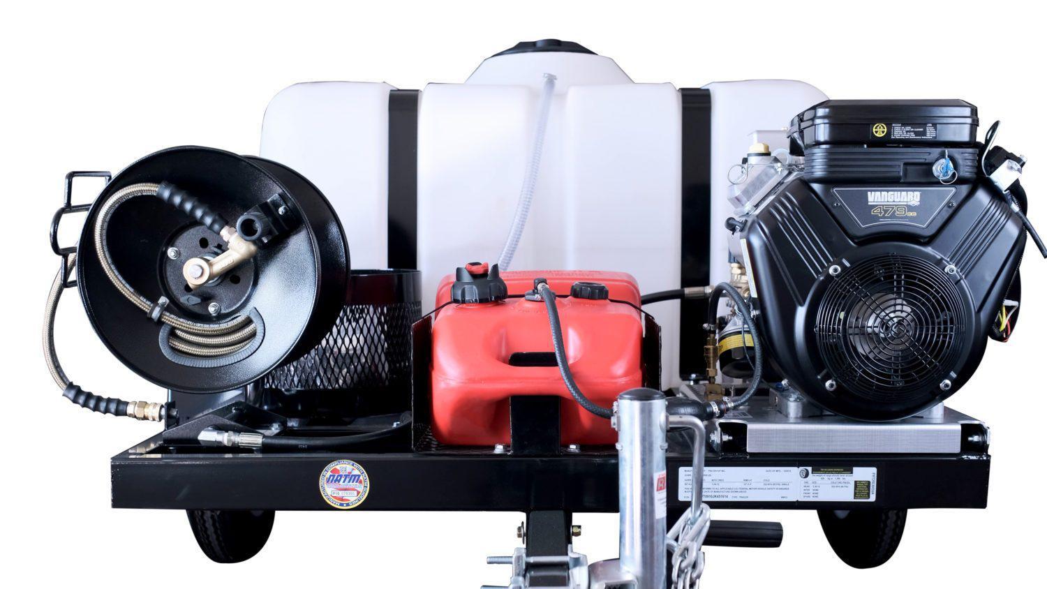 SIMPSON® pressure washer trailer 4200 PSI @ 4.0 GPM is a self-contained cleaning machine. Engineered to utilize the power and performance from the top of the line SIMPSON pressure washers matched with the portability of a utility trailer. The 95004 is run by a Vanguard engine and comes with a 100’ hose, an ergonomic spray gun, and 5 Quick-Connect nozzles. With this mobile system, you can bring a cleaning solution into the field where water supply is an issue.