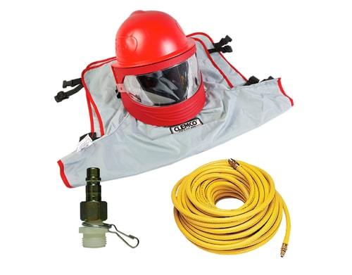 The Clemco 22082 low pressure (LP) Apollo 60 is a type CE, continuous flow, supplied-air respirator for use with an ambient air pump. The included Constant-Flow Connector (CFC) provides a fixed flow of air. Also included is a 1-2” x 50’ respirator hose to connect the ambient air pump to the helmet connection.